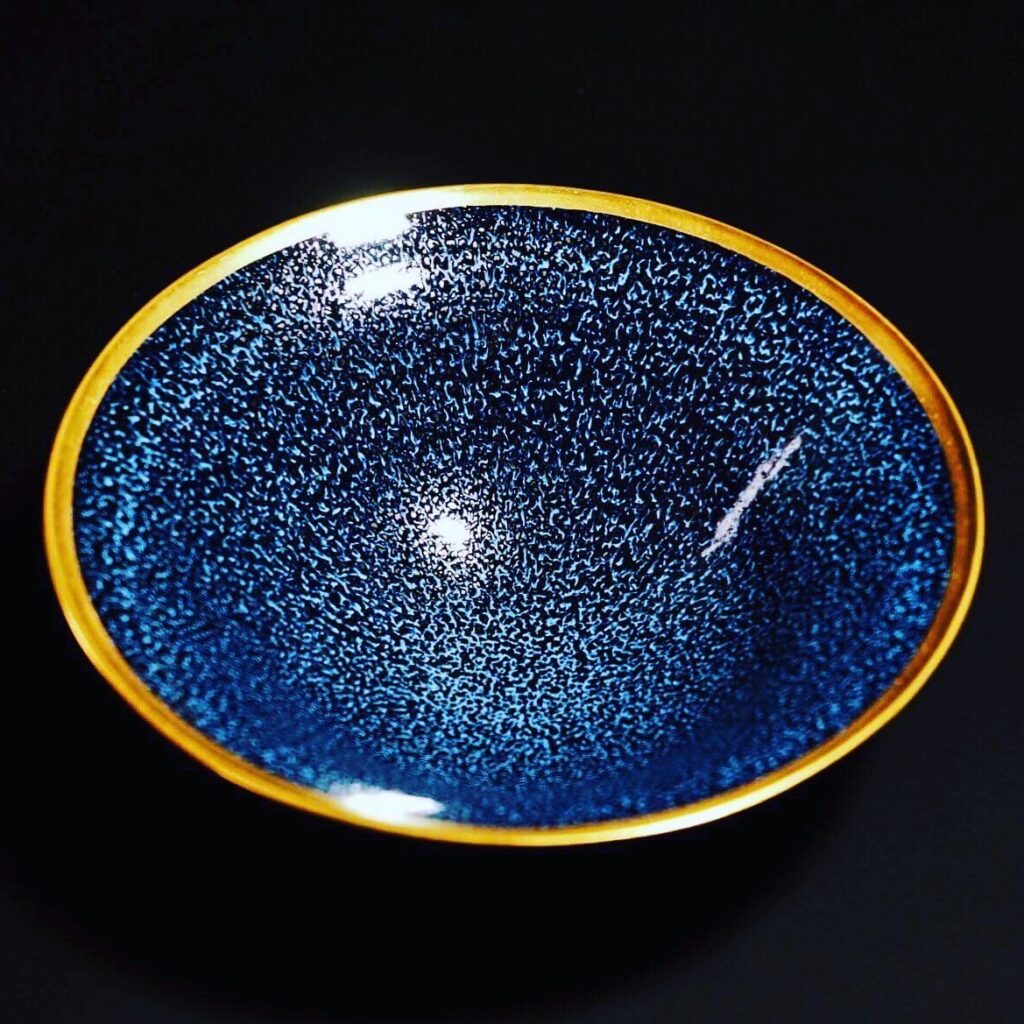 幾度もの失敗の果てに、漆黒の釉薬の中に浮かび上がる銀河の星々。それは器という小宇宙に、窯の炎が焼き付けた「宇宙の記憶」そのものです。