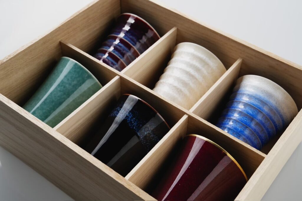 真右エ門窯が生み出す16種のぐい吞は、一つひとつが宝石のような輝きを放ちます。